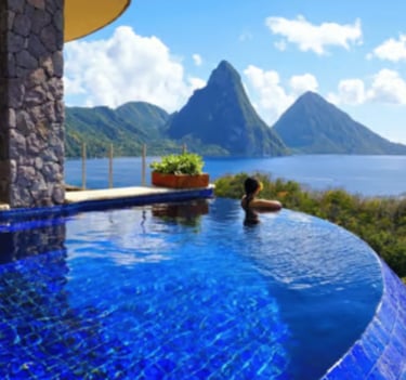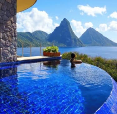 Jade Mountain: iconic infinity pools open to Piton views.